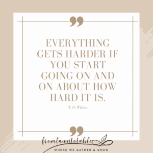 Instead, choose to be mindful and intentional with your mindset. Instead of “I have to weed the garden, and I just want to relax. I’m so tired.” Change your mindset to, “I get to weed the garden. I’m so glad I finally took the time to start it. I love how fresh tomatoes are so much better than store-bought.” Instead of, “We have no money to start this project, and this is awful,” choose to look into frugal gardening ways, and focus on how this challenge strengthens family values related to problem-solving and frugality.